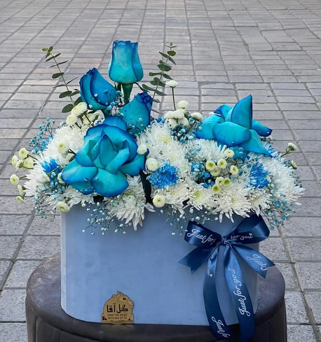 دیزاین انواع باکس و سبد گل: طراحی باکسهای سوپرایزی، سبدهای حصیری و جامهای گل مجلل مناسب برای خواستگاری، تولد و سالگردها.
